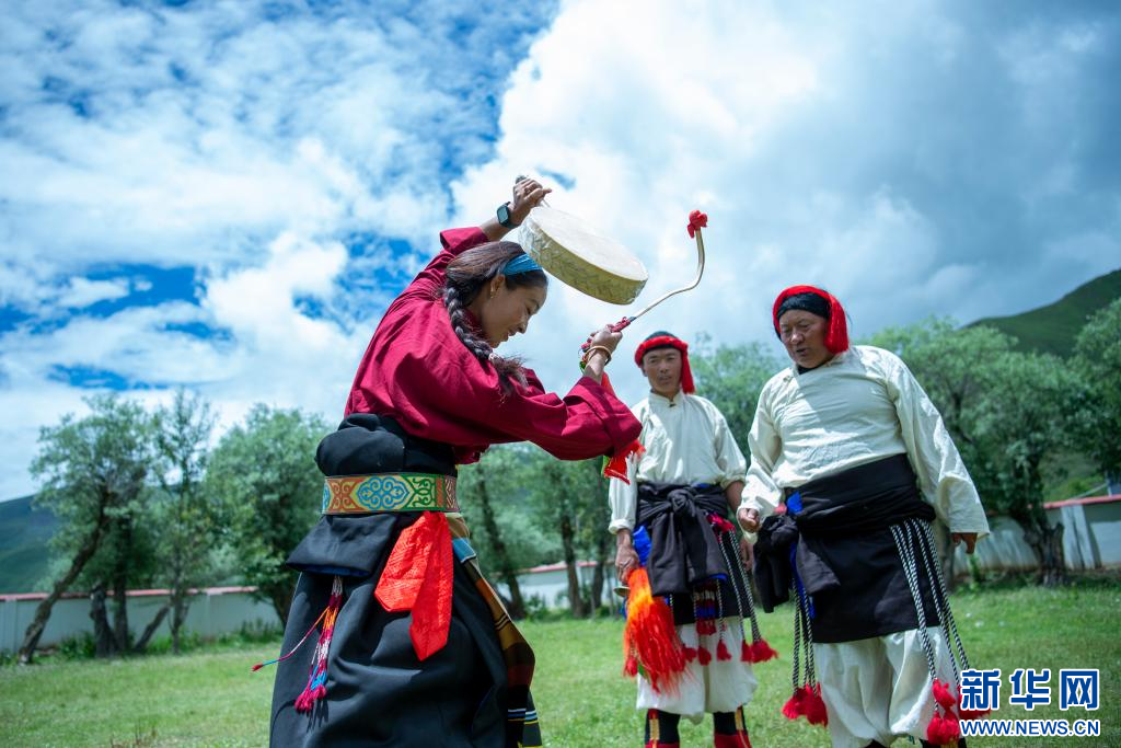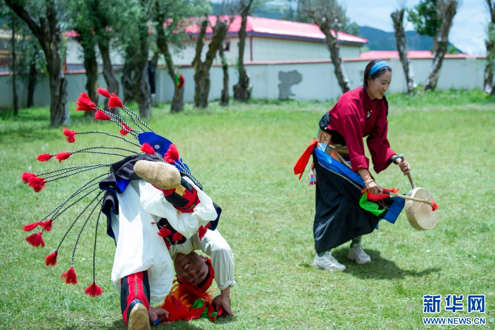 7月12日,西藏昌都市丁青縣尺犢鎮(zhèn)烏巴村文藝演出隊隊員在排練。 新華網(wǎng) 旦增努布 攝