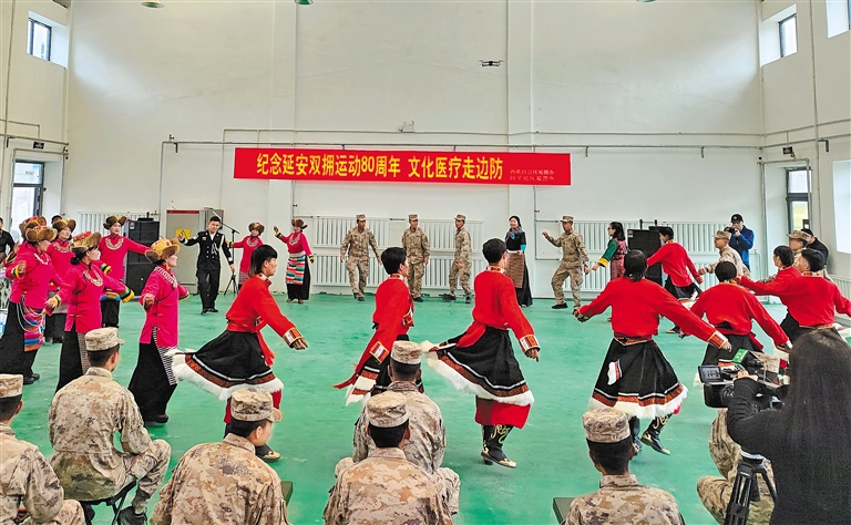 西藏軍區(qū)一線哨所、武警西藏總隊(duì)執(zhí)勤點(diǎn)位、空軍駐藏部隊(duì)雷達(dá)站……“文化醫(yī)療走邊防”系列活動(dòng)慰問(wèn)小分隊(duì)似一股清泉,滋潤(rùn)著每一名邊防官兵的心田,凝聚起戍邊衛(wèi)國(guó)的磅礴力量。海拔5300多米的查果拉哨所一名戰(zhàn)士引用了《文成公主》實(shí)景劇里的一句話(huà)代表著所有邊防官兵的心聲:“‘走不到的地方是遠(yuǎn)方,回不去的地方是故鄉(xiāng)’,駐地政府和人民群眾的關(guān)心讓我們感到‘天下沒(méi)有遠(yuǎn)方,人間都是故鄉(xiāng)’?!?/p>
