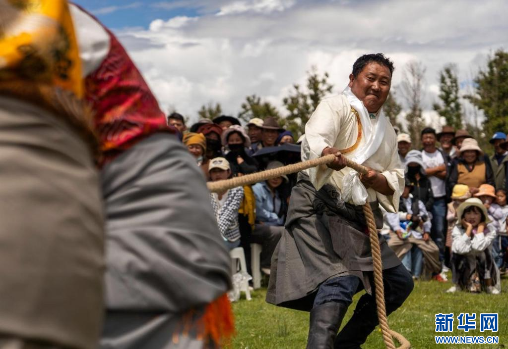 圖為達孜“望果節(jié)”拔河比賽現場(7月28日攝)。新華網發(fā) 李騰 攝