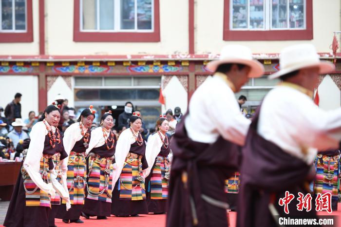 圖為昌都市民間鍋莊舞比賽現(xiàn)場(chǎng)。貢嘎來(lái)松 攝