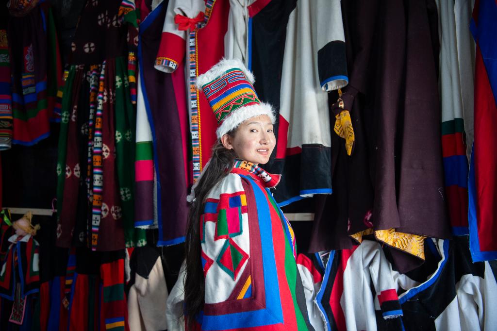 即將奔赴千里之外,邊巴瓊吉并沒有忘記從小陪伴在她身邊的森郭服飾。穿上父親親手制作的森郭服飾,她心情激動:“森郭服飾有著深厚的底蘊,我會帶一套到學校。用森郭服飾來介紹我的家鄉(xiāng)時,我將感到無比驕傲和自豪。五彩的森郭服飾,未來會更鮮艷?!?/p>