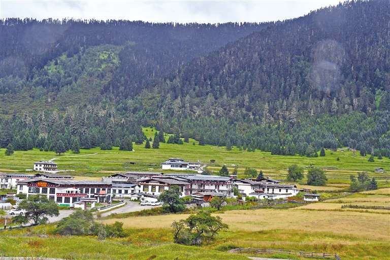 平措大叔家庭旅館所在的魯朗扎西崗村美景。張猛 攝