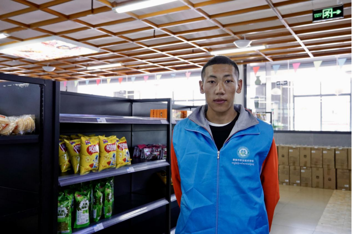 為學(xué)生全面發(fā)展夯實基礎(chǔ),學(xué)校特別設(shè)置了多樣化的功能室。每周,來自藏醫(yī)專業(yè)的高三學(xué)生索日吉和卡松旺堆,都會在課余時間在校園電視臺擔(dān)任播音主持人。“在這里類似的機(jī)會有很多,能見到的、聽到的、觸摸到的變多了,眼界也變開闊了。”卡松旺堆說。同為高三學(xué)生的朗崗平措,每天都會去模擬創(chuàng)業(yè)實訓(xùn)基地的學(xué)生生活超市值班。作為店長,他現(xiàn)在已經(jīng)熟練掌握了超市運營中各環(huán)節(jié)的操作流程,并能夠完全獨立地和各企業(yè)對接進(jìn)貨。據(jù)了解,自去年12月正式開業(yè)起,學(xué)生生活超市已盈利42萬元,未來這些收入將作為學(xué)生創(chuàng)業(yè)啟動基金。