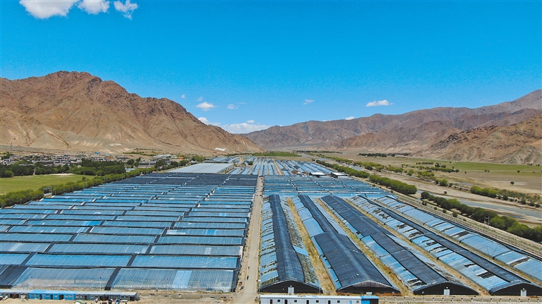 圖為日喀則市白朗縣連片的蔬菜大棚。記者 扎西頓珠 旦增嘎瓦 攝