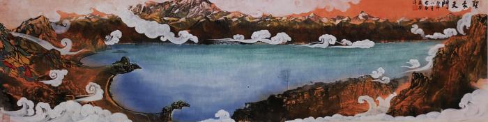 圖為劉洋國畫作品描繪的納木錯(cuò)圣象天門景觀。 劉洋 供圖