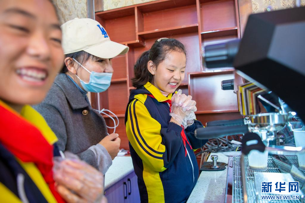 圖為那曲市特殊教育學(xué)校學(xué)生首次學(xué)做咖啡(9月4日攝)。新華網(wǎng) 旦增努布 攝