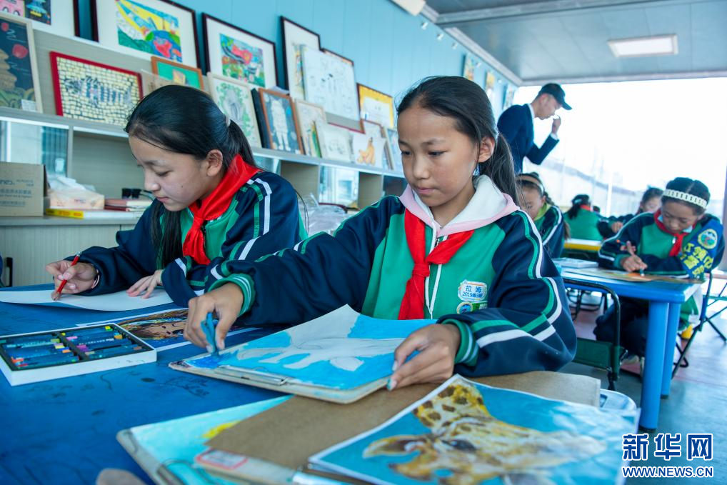圖為那曲市第二小學(xué)學(xué)生在學(xué)習(xí)繪畫(huà)(9月5日攝)。新華網(wǎng) 旦增努布 攝