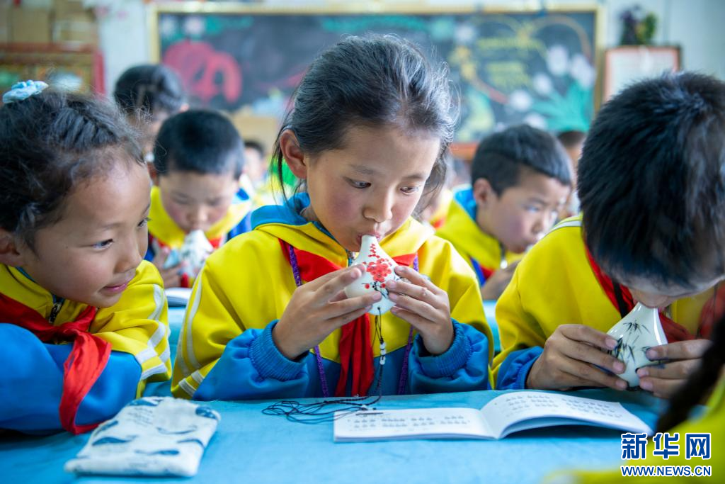 圖為索縣第一小學(xué)學(xué)生在學(xué)習(xí)陶笛(9月7日攝)。新華網(wǎng) 旦增努布 攝