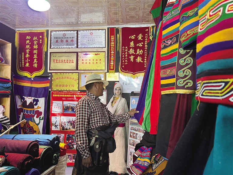 邊巴瓊吉是努拉的小女兒,今年以優(yōu)異的成績(jī)考上了湖南師范大學(xué),她表示,由于家里人都會(huì)制作“森郭服飾”,她從小就對(duì)這種服飾有很深的感情?!皩?duì)我來(lái)說(shuō),‘森郭服飾’是童年里最艷麗的色彩。逢年過(guò)節(jié),我都會(huì)穿上爸媽手工制作的‘森郭服飾’,別的小朋友都特別羨慕我?!边叞铜偧χf(shuō),“每一件‘森郭服飾’都是爸媽精心制作的,一針一線里包含了他們對(duì)于傳統(tǒng)服飾的堅(jiān)守,也讓我認(rèn)識(shí)到傳承這門(mén)手藝的重要性,以后有機(jī)會(huì)我也想成為守護(hù)‘森郭服飾’的一員?!?/p>