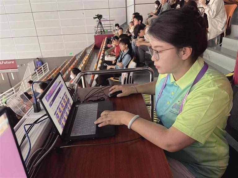 同在攝像助理崗位的塔巴曲珍感受更深刻,因為她親眼見證了中國隊獲勝?!霸诤贾菔信R平體育中心進行的亞運會男排前12名交叉賽中,中國隊以3比1戰(zhàn)勝印度尼西亞隊,當時,我近距離見證了這一精彩時刻?!彼颓浼拥卣f,“平時都是通過電視觀看,沒有太多的情緒起伏。但在現(xiàn)場真的太震撼了,這將會成為我終生難忘的記憶,這些記憶都會是我今后前行路上的動力。”
