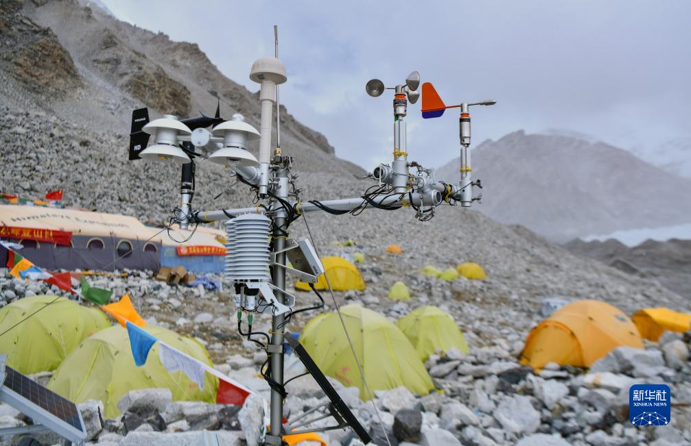 位于海拔5700米卓奧友峰前進(jìn)營(yíng)地的自動(dòng)氣象站(9月29日攝)。新華社記者 晉美多吉 攝