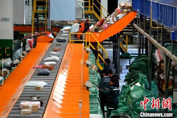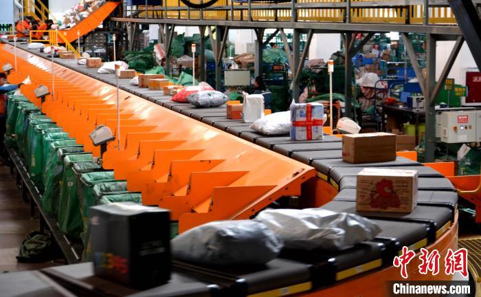圖為自動化分揀設備正在分揀快遞包裹。西藏自治區(qū)郵政管理局供圖