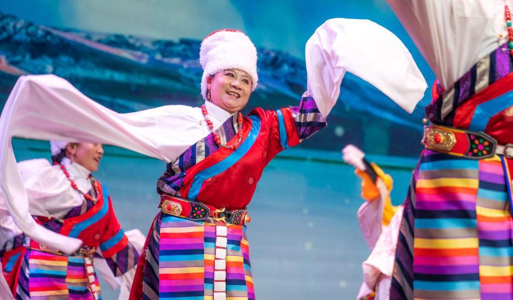 當日,由西藏自治區(qū)文化廳主辦的“我們的節(jié)日,關(guān)愛老年人”重陽節(jié)文藝演出活動在西藏自治區(qū)群眾藝術(shù)館舉辦,來自全區(qū)各地的老年文藝團演員齊聚一堂,載歌載舞歡度重陽佳節(jié)。