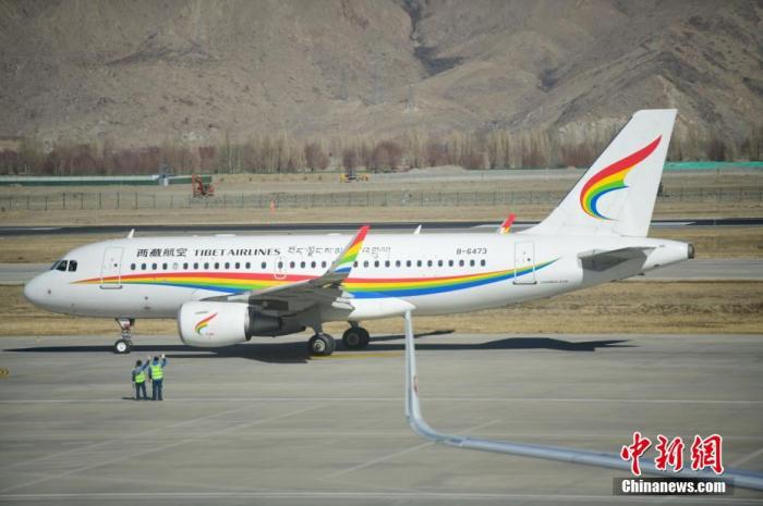 1月7日,一架西藏航空客機(jī)在拉薩貢嘎機(jī)場準(zhǔn)備起飛。當(dāng)日是2023年春運(yùn)首日,西藏拉薩貢嘎機(jī)場旅客出行井然有序。(中新社記者 貢嘎來松攝)