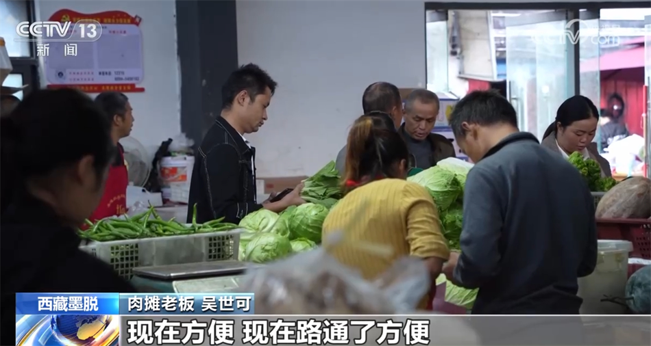 餐飲店經(jīng)營者 張森:剛開店的時候,食材每天都要從波密自己開車去拉。早上六點鐘從墨脫縣就出發(fā),來回要晚上十點鐘才能到墨脫。吃一次魚是很難很難的,路太難走了,車也走得慢,魚拉過來都會死掉,時間太長了?,F(xiàn)在不用去波密買菜,都在我們這邊菜市場采購就行了,買一個多小時買完了?,F(xiàn)在完全不一樣,翻天覆地的變化,路也好了,生活物資也跟得上,水果那些也很豐富。