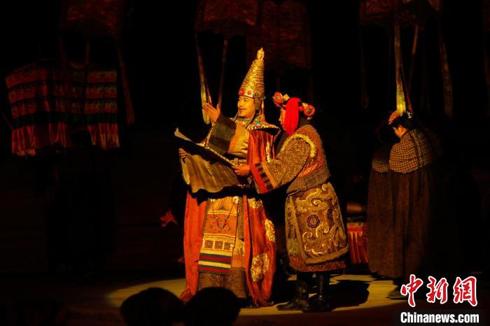 圖為劇中再現(xiàn)文成公主與松贊干布相會。貢確 攝