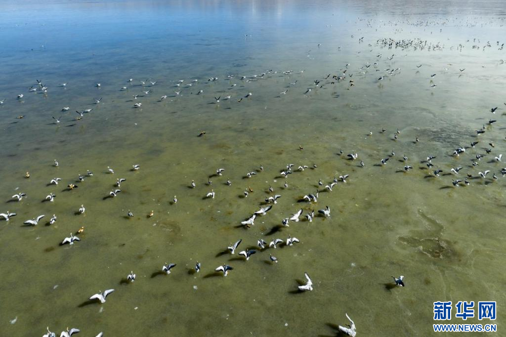 11月17日,在哲古湖拍攝的鳥群(無人機照片)。新華網(wǎng) 旦增努布 攝