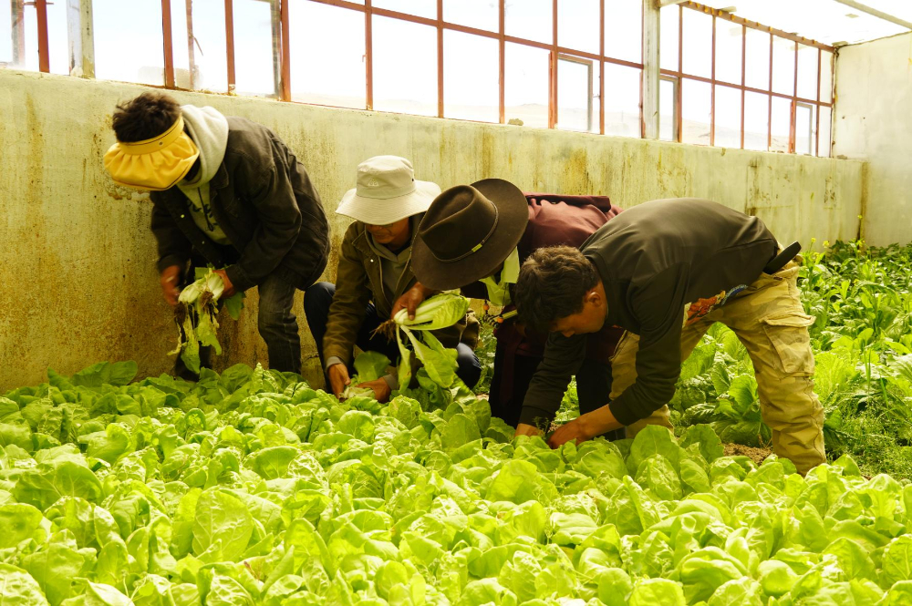 自治區(qū)交通運(yùn)輸廳駐熱扎村工作隊(duì)依托蔬菜大棚為43戶群眾分發(fā)新鮮蔬菜。