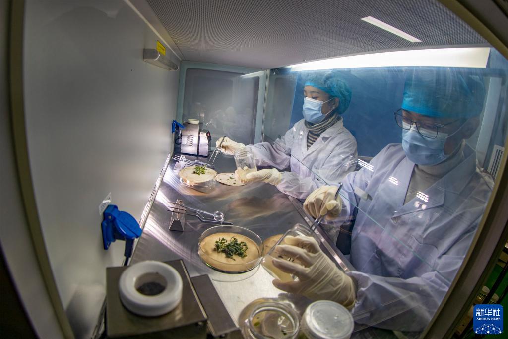科研人員在進行植物組織培養(yǎng)和接種工作(11月30日攝)。新華社記者 姜帆 攝