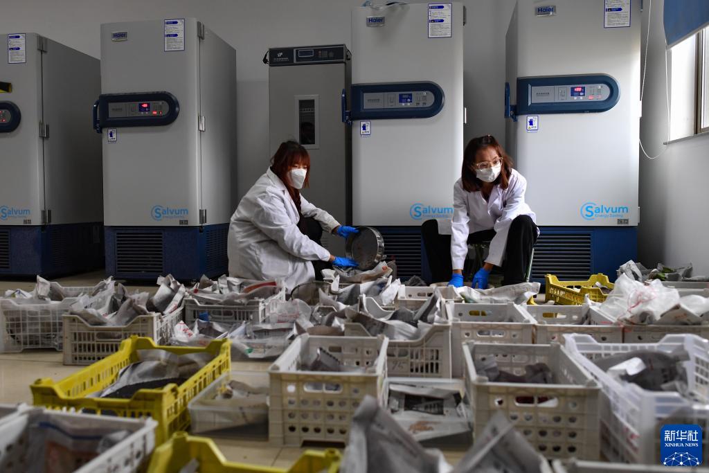 科研人員在整理種子低溫保存庫中儲存的各種種子(11月30日攝)。新華社記者 晉美多吉 攝