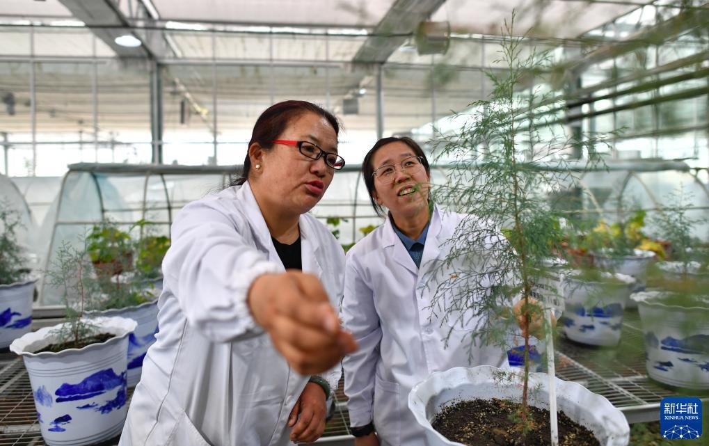 科研人員在查看西藏巨柏實生苗生長情況(11月30日攝)。新華社記者 晉美多吉 攝