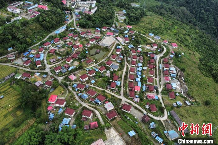 圖為2022年12月4日,西藏墨脫縣達(dá)木珞巴民族鄉(xiāng)村居錯落有致。(無人機(jī)畫面) (布姆曲珍供圖)