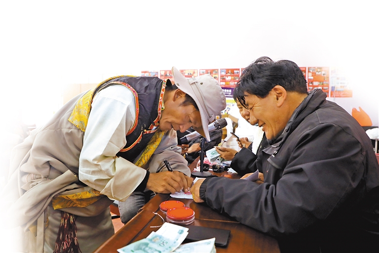圖為改則縣改則鎮(zhèn)圓夢新居社區(qū)合作社分紅儀式現(xiàn)場。記者 達(dá)珍 永青 攝