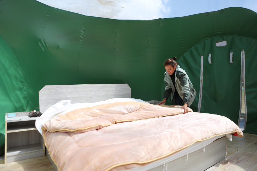 白瑪?shù)录退恼煞蛞蠛隙疾簧蒲赞o。他們的民宿緊鄰318國(guó)道,生態(tài)環(huán)境很好,旁邊的旅游景點(diǎn)也多,每個(gè)月大概能有3萬多元的收入,旺季則更好。在他們的共同努力下,這片民宿逐漸成為了他們的“一方天地”。