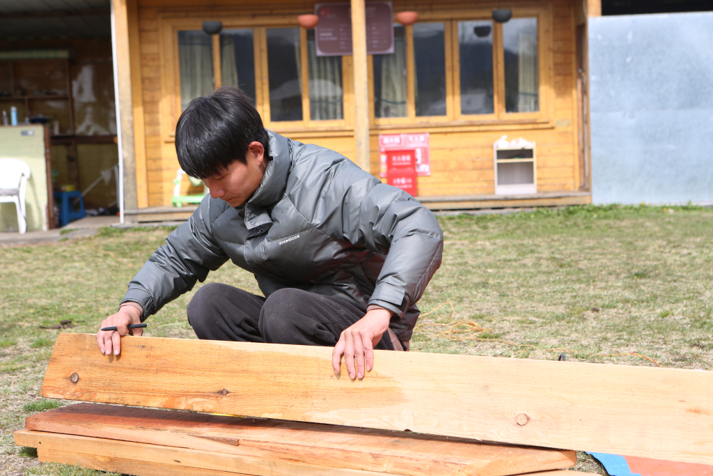 每個(gè)煙雨朦朧的清晨,都是夫妻倆最忙碌的時(shí)候。白瑪?shù)录?fù)責(zé)民宿房間內(nèi)的保潔工作,丈夫殷合做一些手工活,制作民宿的木桌木椅等用具。夫妻倆就這么一天天地過著,忙得不亦樂乎。