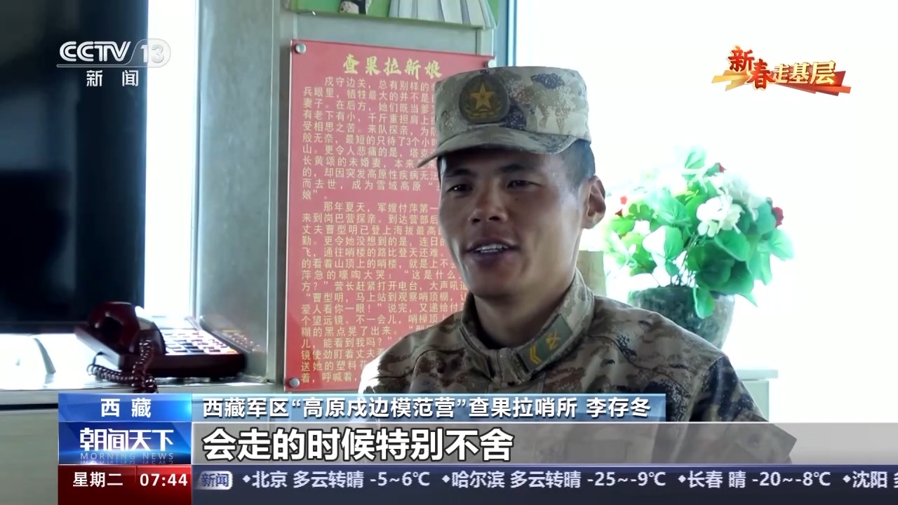 在喜馬拉雅山腳下的西藏亞東縣,駐扎著全軍為數不多的海拔超過5000米的哨所——查果拉。臨近春節(jié),總臺新春走基層記者來到查果拉哨所,記錄下戍邊官兵保家衛(wèi)國的忠誠和擔當。