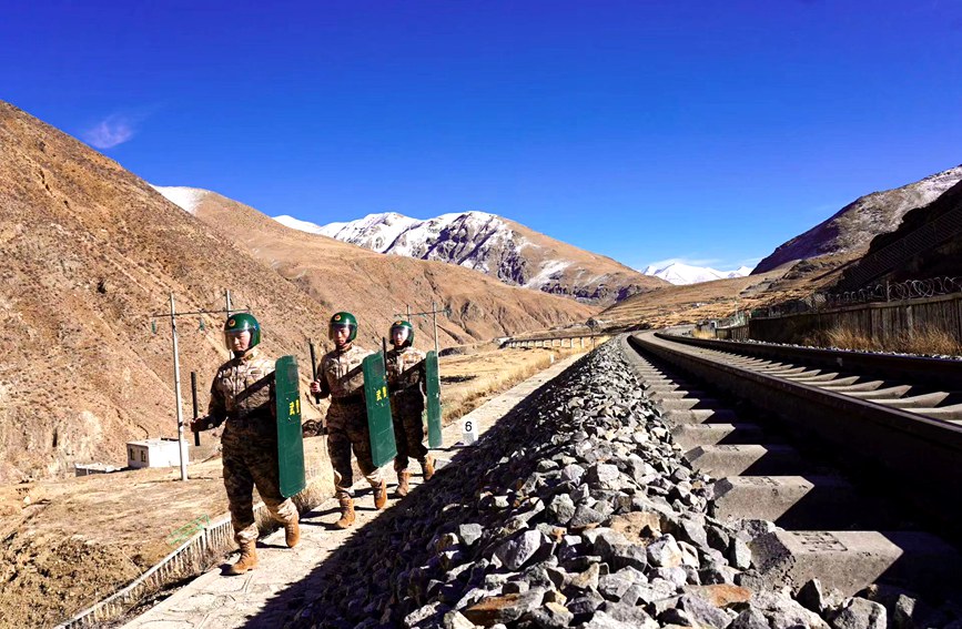 武警戰(zhàn)士在鐵路沿線巡邏。采訪對(duì)象提供