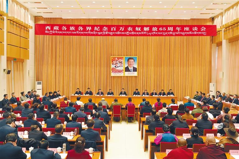 3月28日,西藏各族各界紀(jì)念百萬農(nóng)奴解放65周年座談會(huì)在拉薩召開。