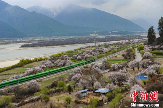 據(jù)悉,拉林鐵路是一條連接西藏拉薩市與林芝市的國(guó)鐵Ⅰ級(jí)單線電氣化鐵路,全長(zhǎng)435公里,設(shè)計(jì)時(shí)速160公里,于2021年6月25日開(kāi)通運(yùn)營(yíng)。圖為穿梭在桃花林中的拉林鐵路高原復(fù)興號(hào)。