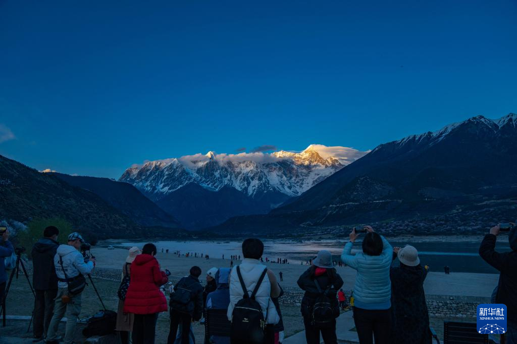 西藏林芝市米林市索松村是欣賞南迦巴瓦峰景觀的最佳位置之一。這里面向南迦巴瓦峰,腳下是蜿蜒的雅魯藏布江。林芝市第二十一屆桃花旅游文化節(jié)期間,雅魯藏布江邊的桃花次第盛開,與雪山、大江相襯,獨(dú)特的景色吸引著各地游客慕名而來,共赴一場(chǎng)“桃花之約”。
