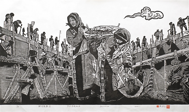 美術(shù)二等獎作品《鑄牢新家園》。 作者 斯單巴