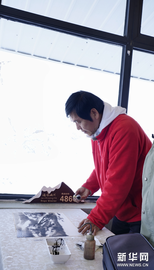 藝術(shù)家在達(dá)古冰川景區(qū)采風(fēng)創(chuàng)作