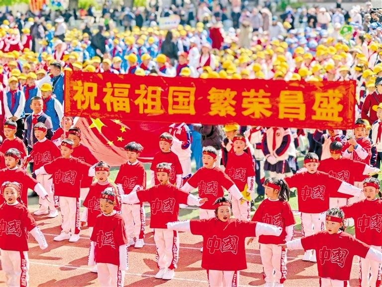拉薩市第一小學學生在運動會上表演節(jié)目。朱穎 攝