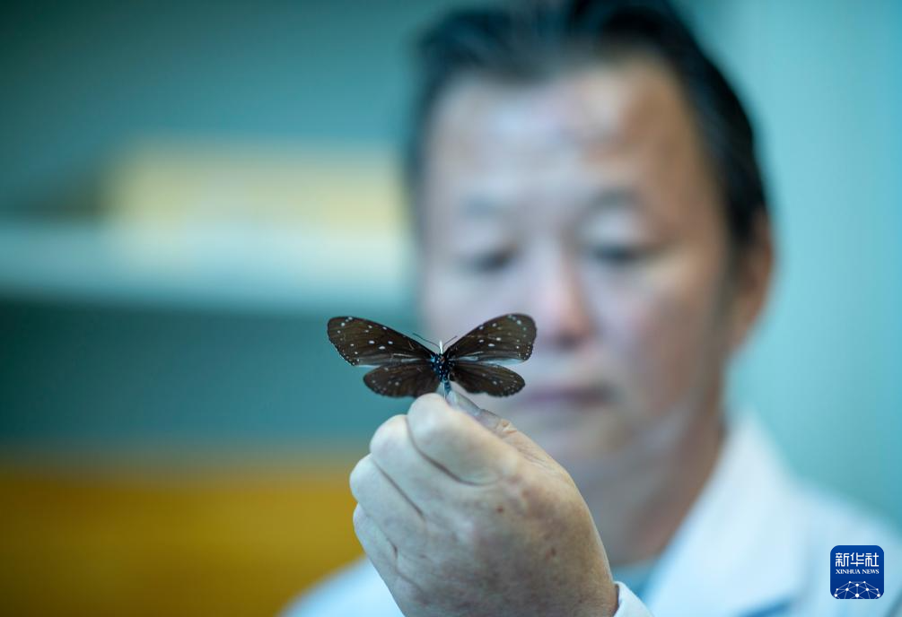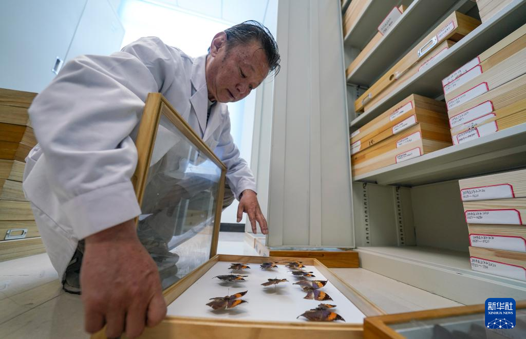 達(dá)娃在位于拉薩的西藏自治區(qū)高原生物研究所展示館藏的蝴蝶標(biāo)本(4月22日攝)。新華社記者 晉美多吉 攝