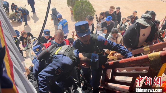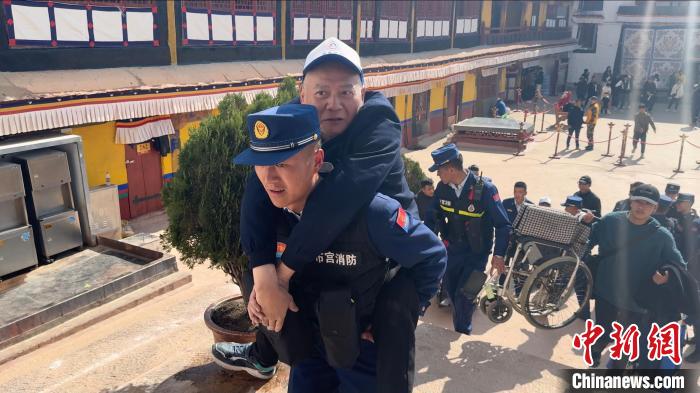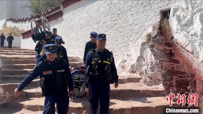 圖為布達(dá)拉宮消防大隊護(hù)航殘障人士游覽。劉瑜 攝