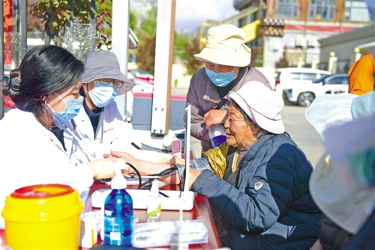 上圖:5月11日,西藏司法警官醫(yī)院聯(lián)合拉薩市城關(guān)區(qū)扎細(xì)社區(qū)黨支部在轄區(qū)開展義診活動,為市民群眾免費(fèi)檢查身體,普及健康知識。 本報記者 潘多 攝