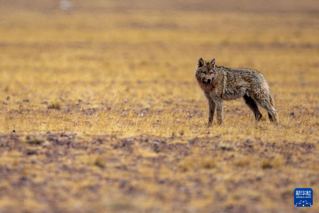 這是在西藏那曲市尼瑪縣境內(nèi)的羌塘國家級(jí)自然保護(hù)區(qū)核心區(qū)拍攝的狼(5月10日攝)。新華社記者 姜帆 攝