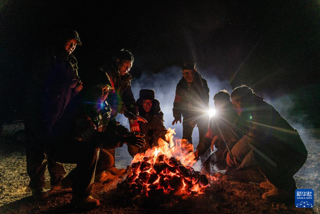 野生動物專業(yè)管護隊員在宿營地里烤火,燃料是野牦牛的糞便(5月10日攝)。新華社記者 丁增尼達 攝