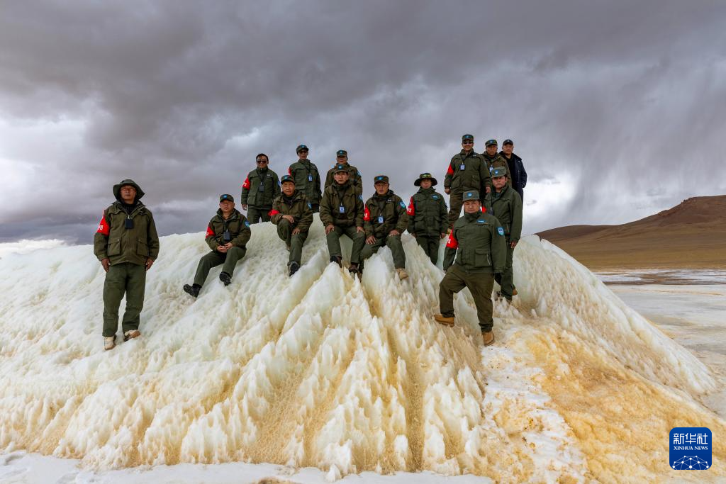 野生動物專業(yè)管護隊員們在一處廢棄的溫泉池中泡腳休息(5月8日攝)。新華社記者 丁增尼達 攝