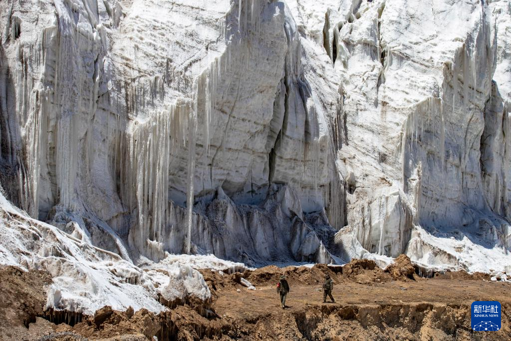 野生動物專業(yè)管護隊員在無人區(qū)深處的藏色崗日冰川巡查(5月11日攝)。新華社記者 姜帆 攝