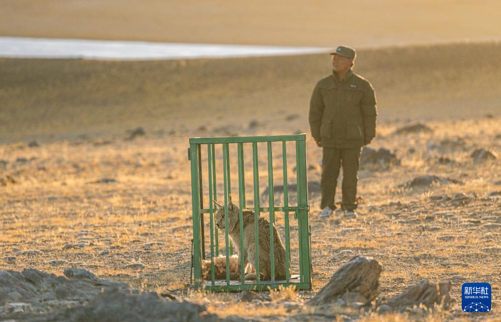 野生動物專業(yè)管護隊員準(zhǔn)備將一頭猞猁放歸自然(5月12日攝)。新華社記者 丁增尼達 攝