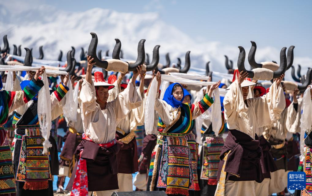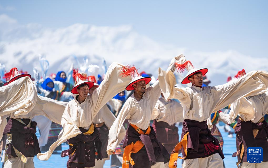 舞蹈演員正在納木錯開湖活動現(xiàn)場表演(5月19日攝)。新華社記者 丁增尼達(dá) 攝