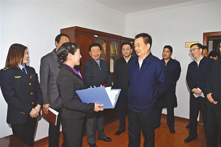 5月29日上午,自治區(qū)黨委書記王君正前往自治區(qū)市場監(jiān)督管理局、自治區(qū)商務廳等單位調(diào)研。這是王君正在自治區(qū)商務廳認真聽取全區(qū)商務工作情況介紹。本報記者 旦增西旦 攝