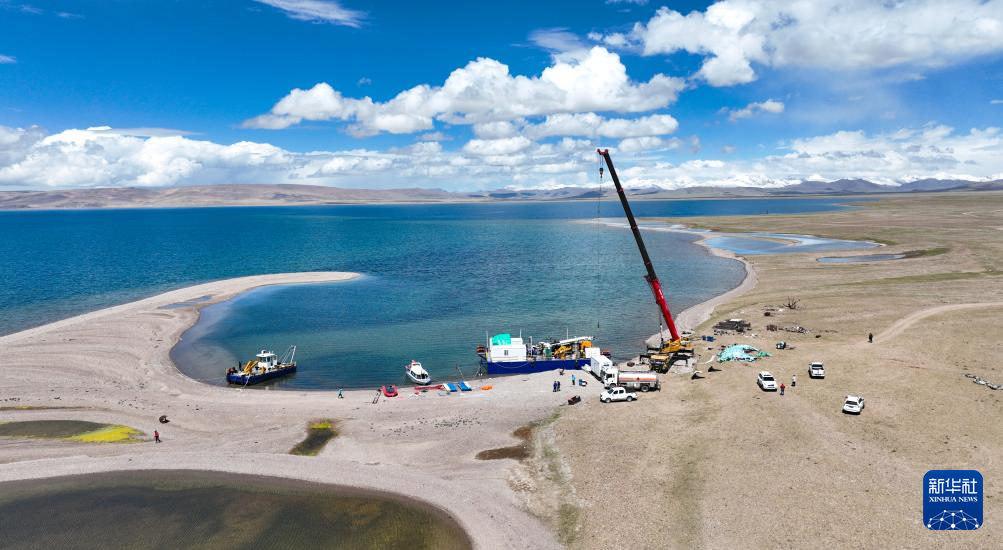 鉆探技術(shù)人員架設(shè)湖泊鉆探平臺(tái)(6月1日攝)。新華社記者 晉美多吉 攝