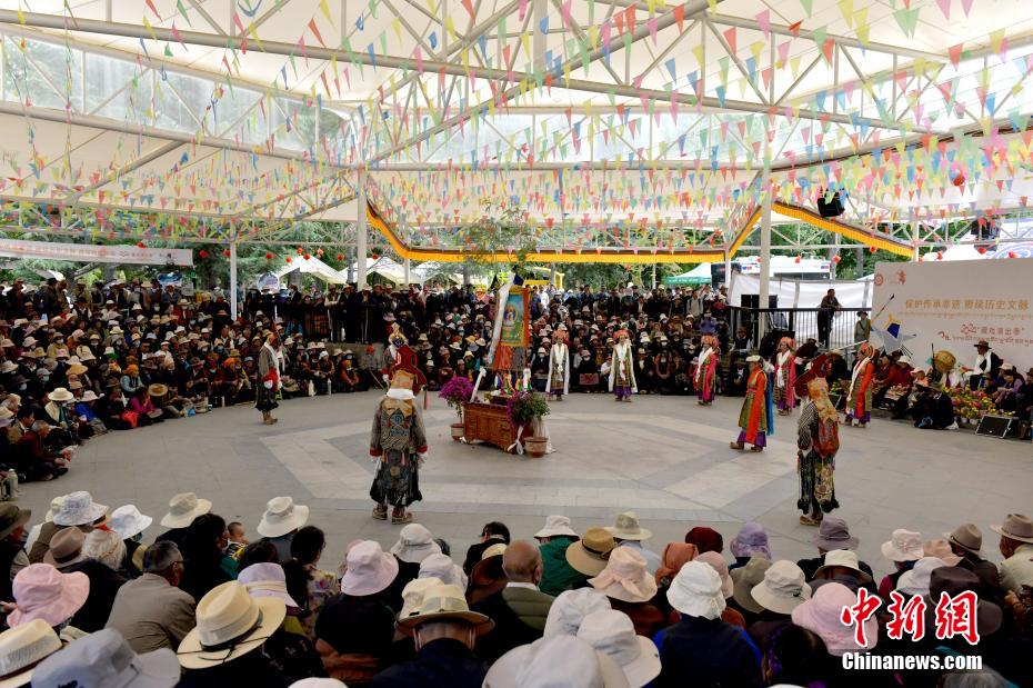 6月12日,藏戲藝人在拉薩市宗角祿康公園表演。從6月9日起,拉薩2024年“藏戲演出季”啟幕。布達(dá)拉宮腳下的宗角祿康公園,5支民間藏戲團(tuán)隊(duì)表演的傳統(tǒng)藏戲劇目,吸引當(dāng)?shù)孛癖姾陀慰颓皝碛^看。李林 攝