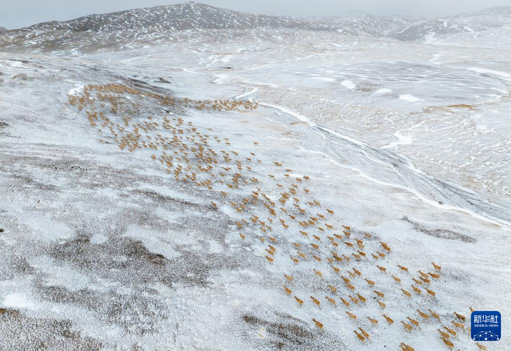 這是在色林錯湖畔拍攝到的藏羚羊(1月5日攝)。 新華社記者 姜帆 攝